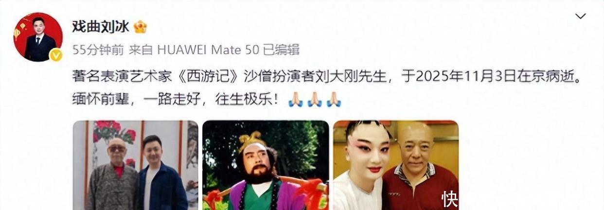 文娱圈又传来不好的音书!据戏曲界东谈主士刘冰浮现,曾在《西纪行》续聚会饰演沙僧的刘大刚先生,于11月3日在北京逝世。刘冰在著述中抒发了哀想,道喜他安息。