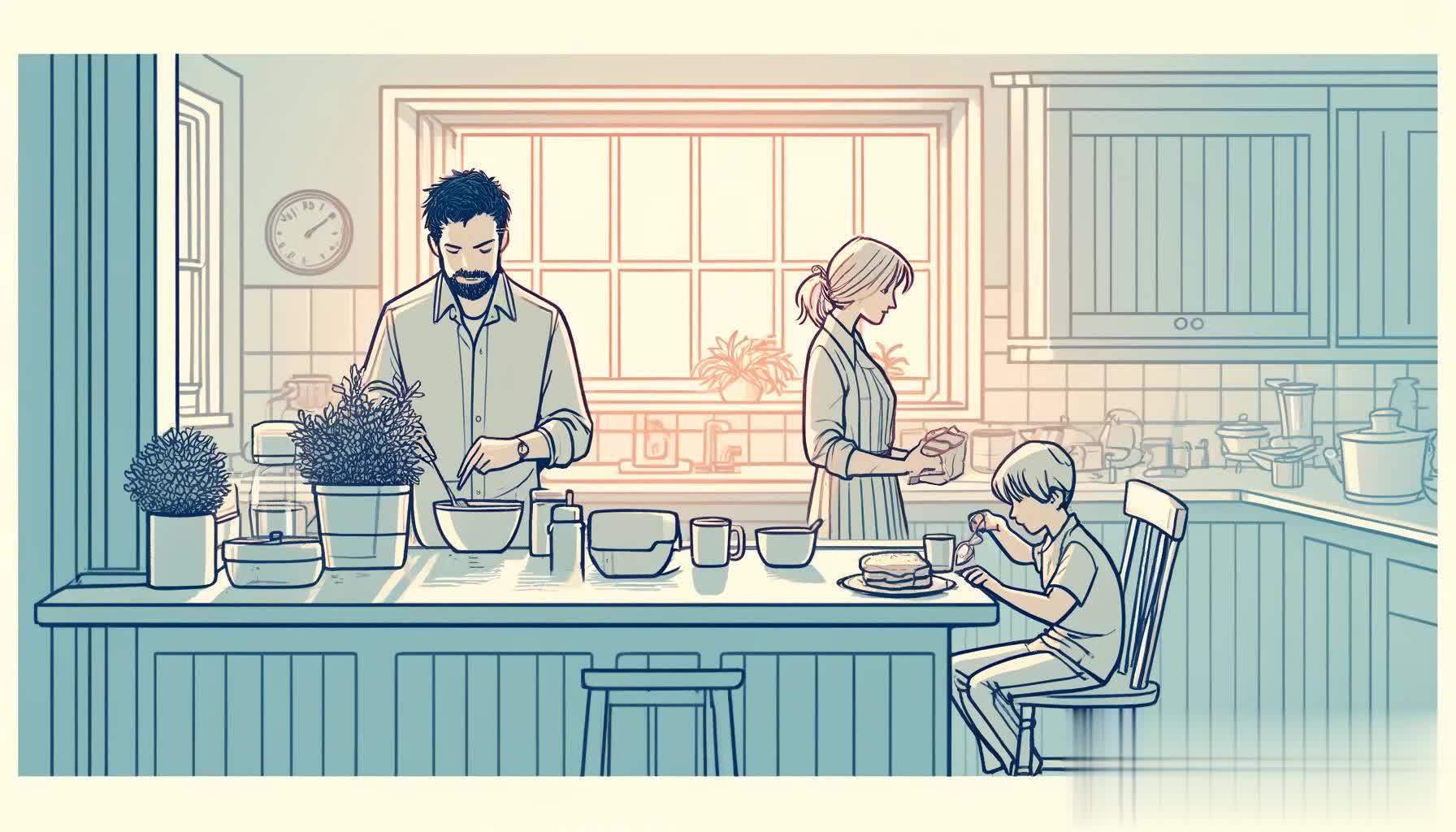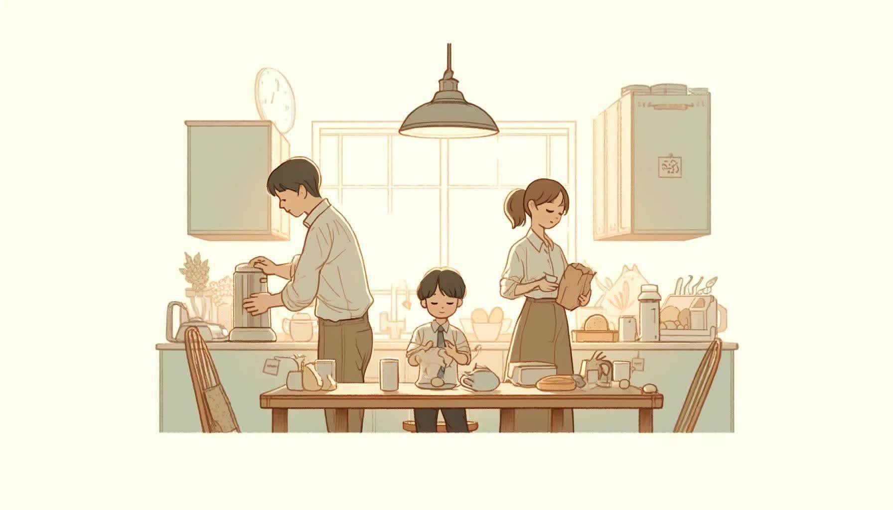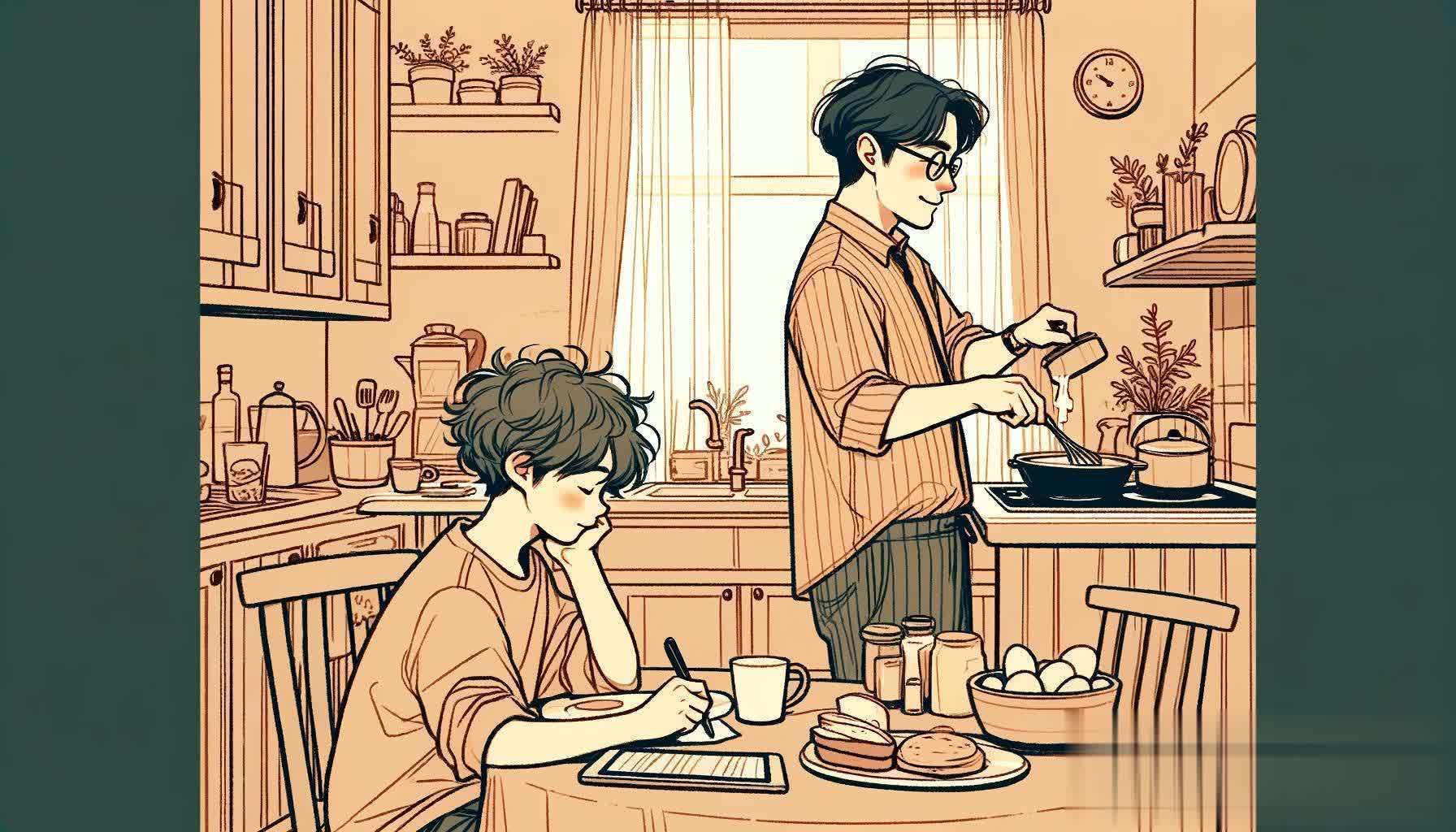 身影忙活的张先生,正在经心准备着女儿的早餐。