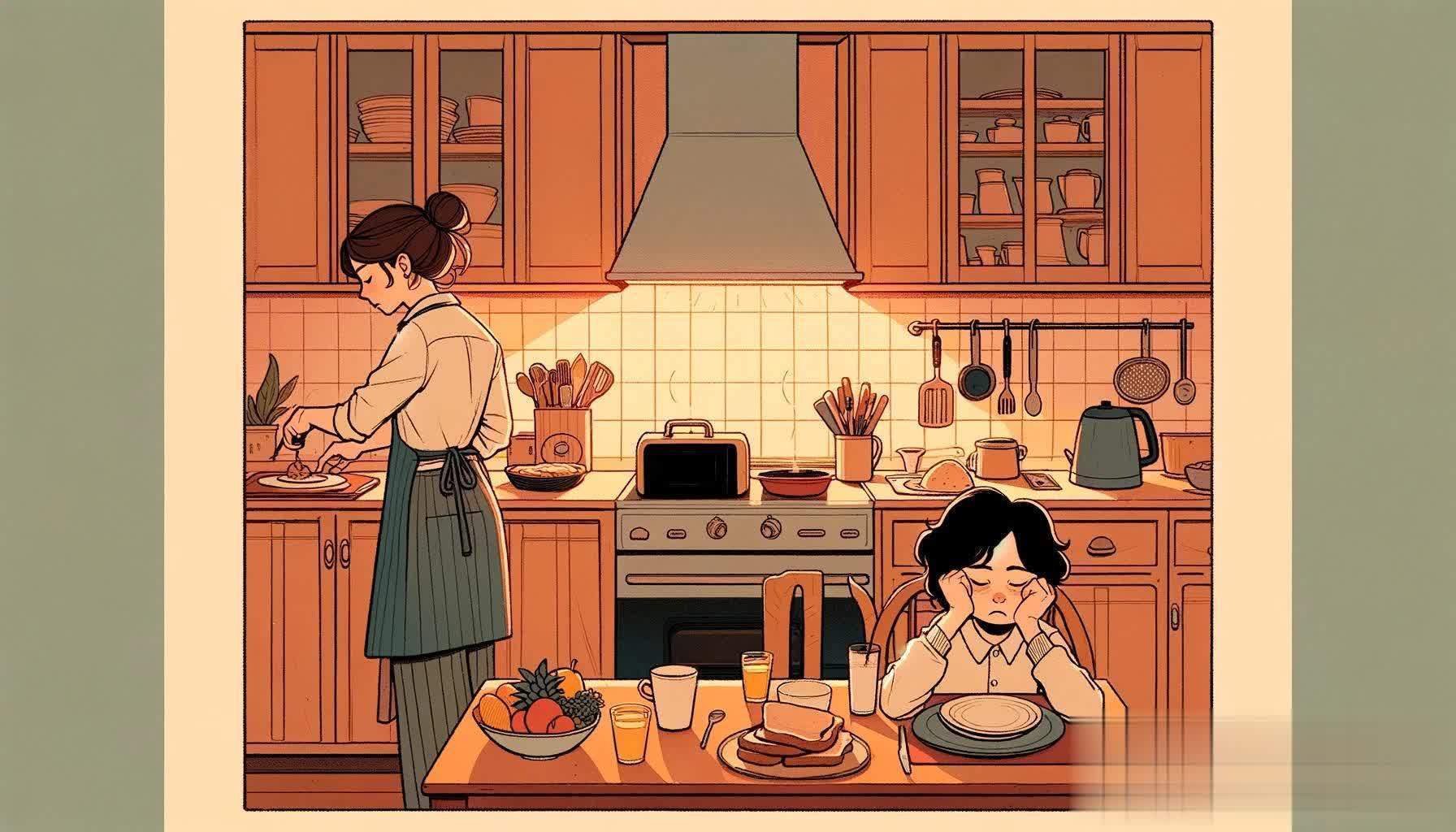 然而,这份温馨的早餐背后,却覆盖着张先生我方的无奈和放弃。