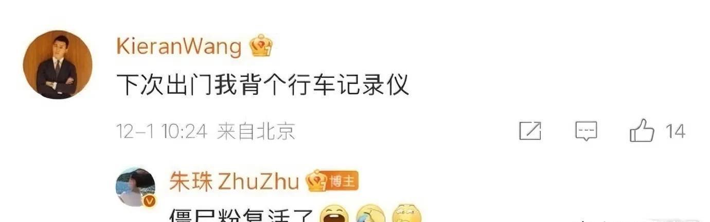 下面老公王昀佳更会接梗:“下次外出我背个行车记载仪”,朱珠秒回“僵尸粉回生了”。