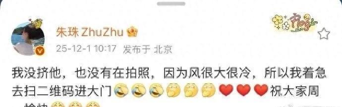 成果半小时后,朱珠本东说念主径直来拆台——她发博说“我没挤他,也没在拍照,风太大太冷,急着扫码进大门”,还配了一串笑哭的色调,吐槽我方那仓猝中样“像大学生赶签到”。