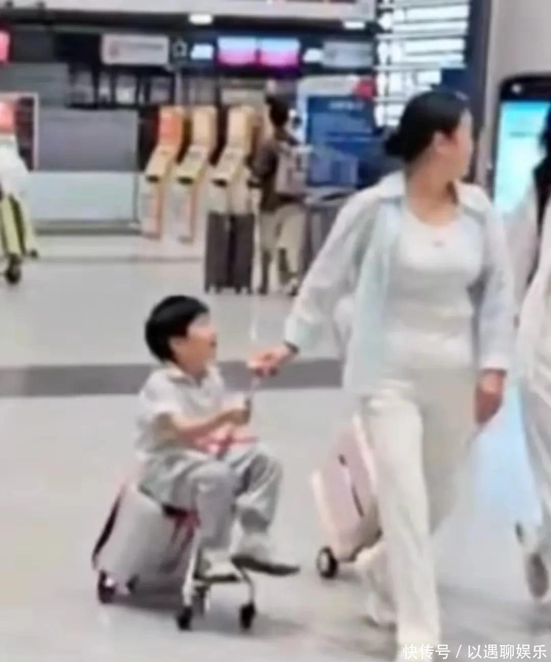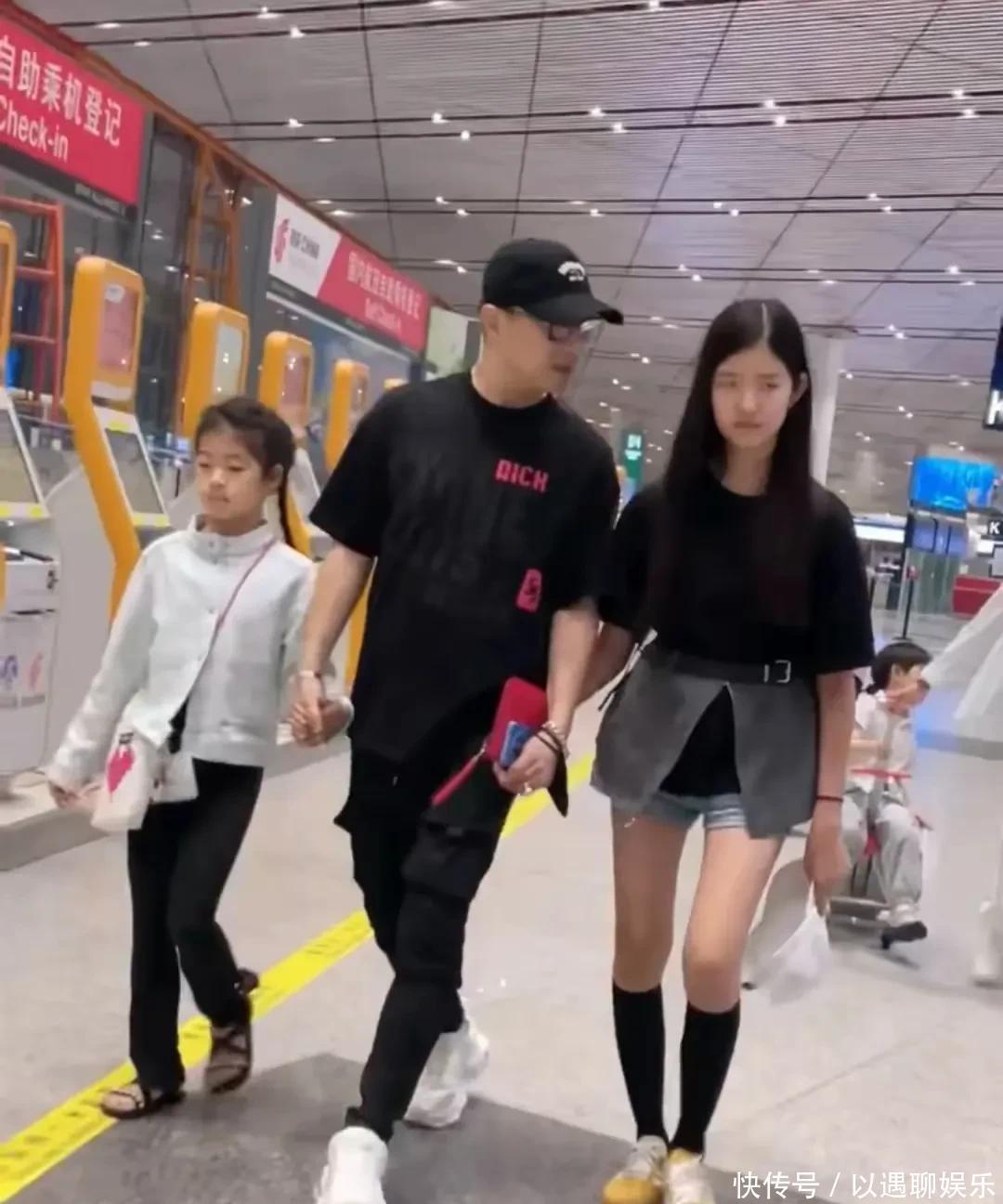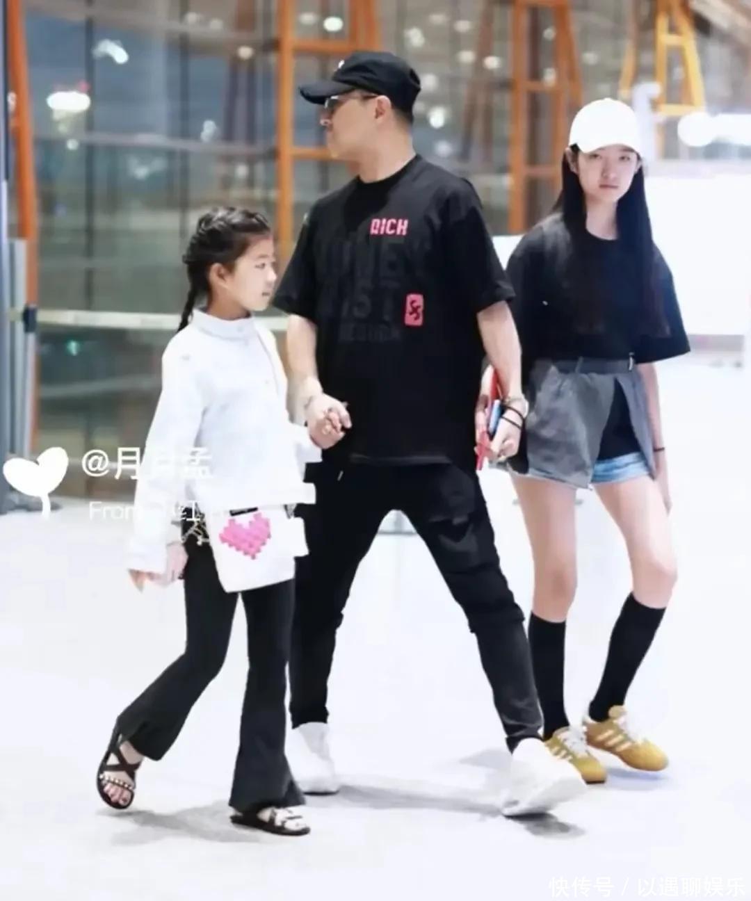 从相片上看欧洲杯体育,他右手牵着9岁的小女儿醒醒,左手拉着13岁的二女儿,爷仨走前边,后面随着20岁的大女儿小苹果,5岁的小女儿由保姆带着坐在行李车上。