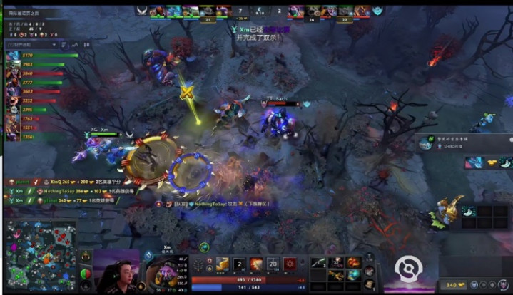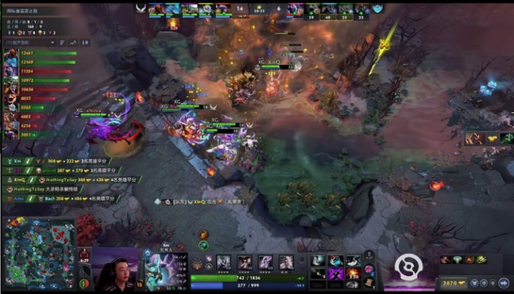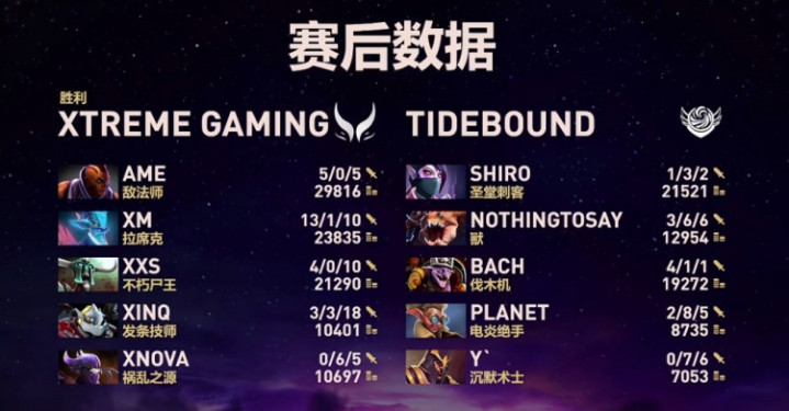 天辉XG:Xxs尸王、XinQ发条技师、xNova祸乱之源、Xm拉席克、Ame敌法师。