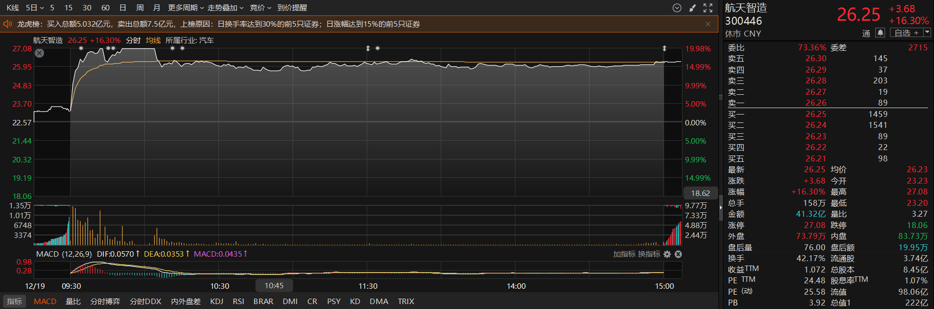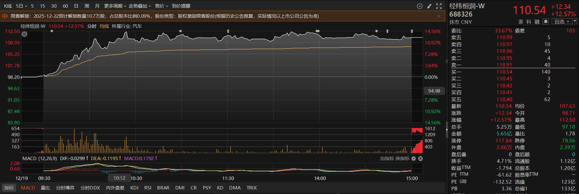 二级阛阓上,经纬恒润周五收盘涨超12%。
